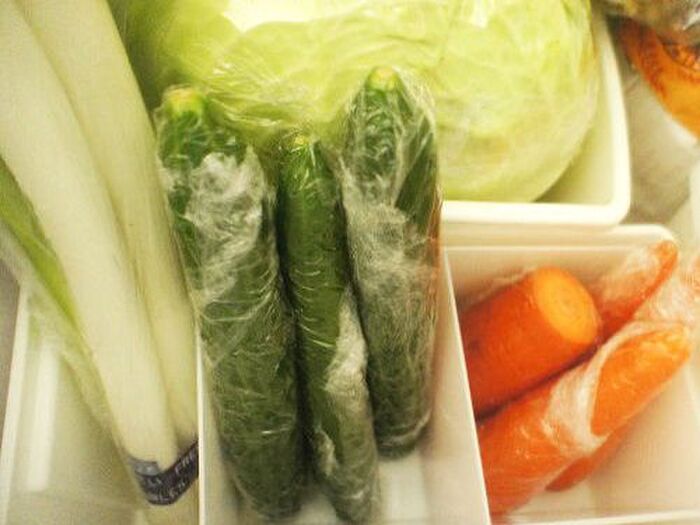 キュウリ、ネギ、ニンジン、大根・・・基本は立てて見やすく。