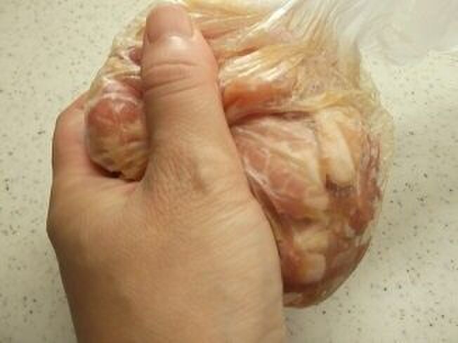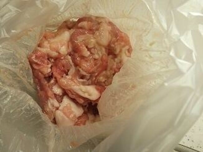 食べやすい大きさに切った豚肉を☆を入れたポリ袋に入れて