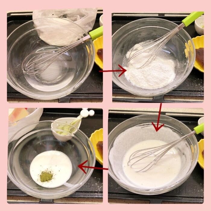 ♦︎抹茶→白生地半量に対し約小さじ1程度用意します。