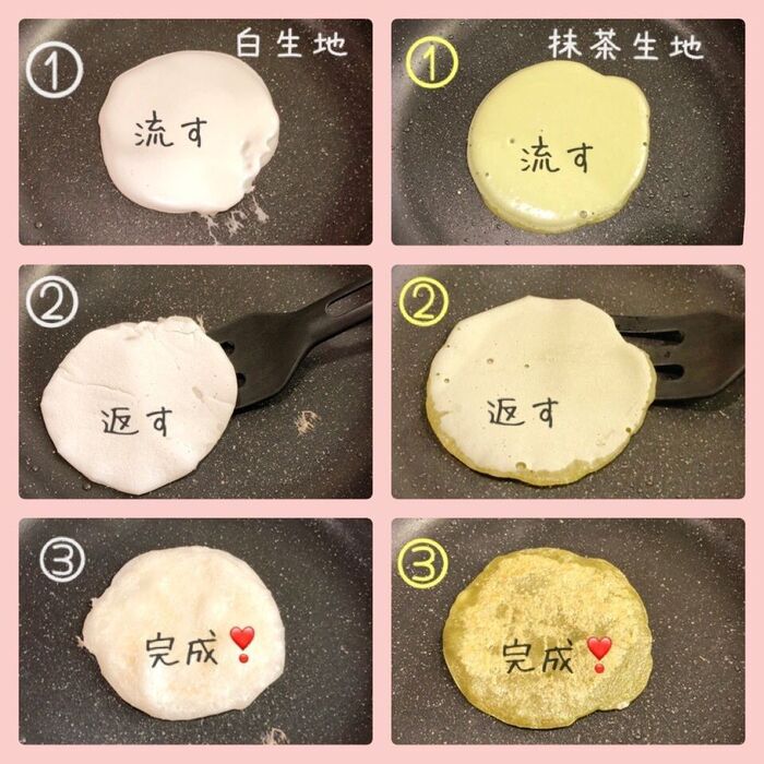 熱したフライパン(又はホットプレート)に薄くサラダ油を敷いて 生地を流す