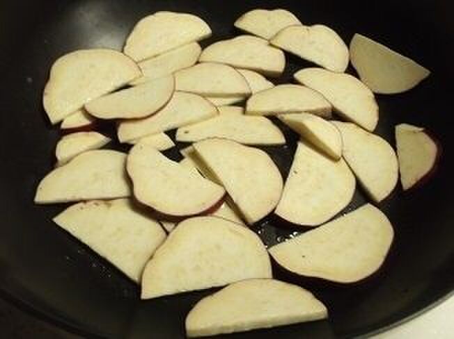 薄い半月切りにした薩摩芋を敷き詰め