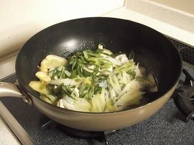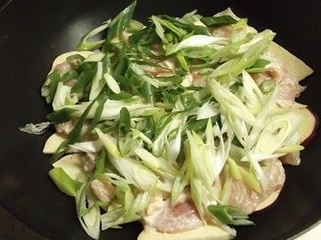 斜め薄切りの長ネギをのせる。