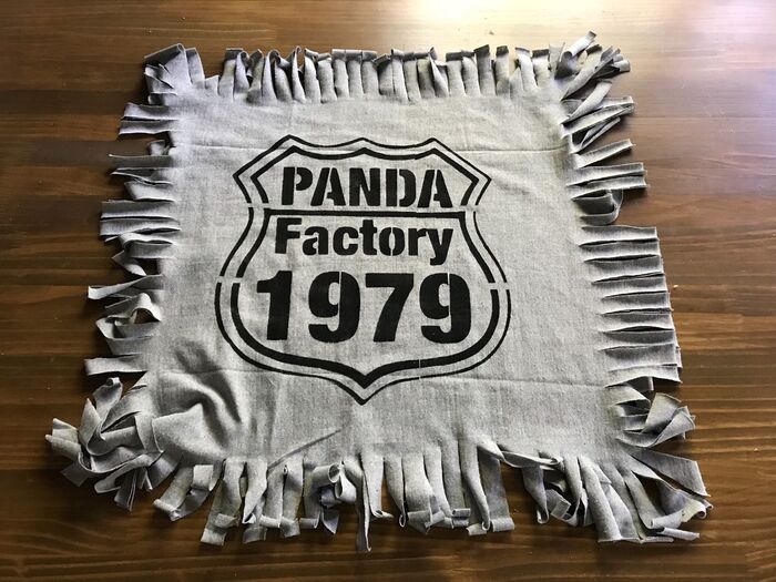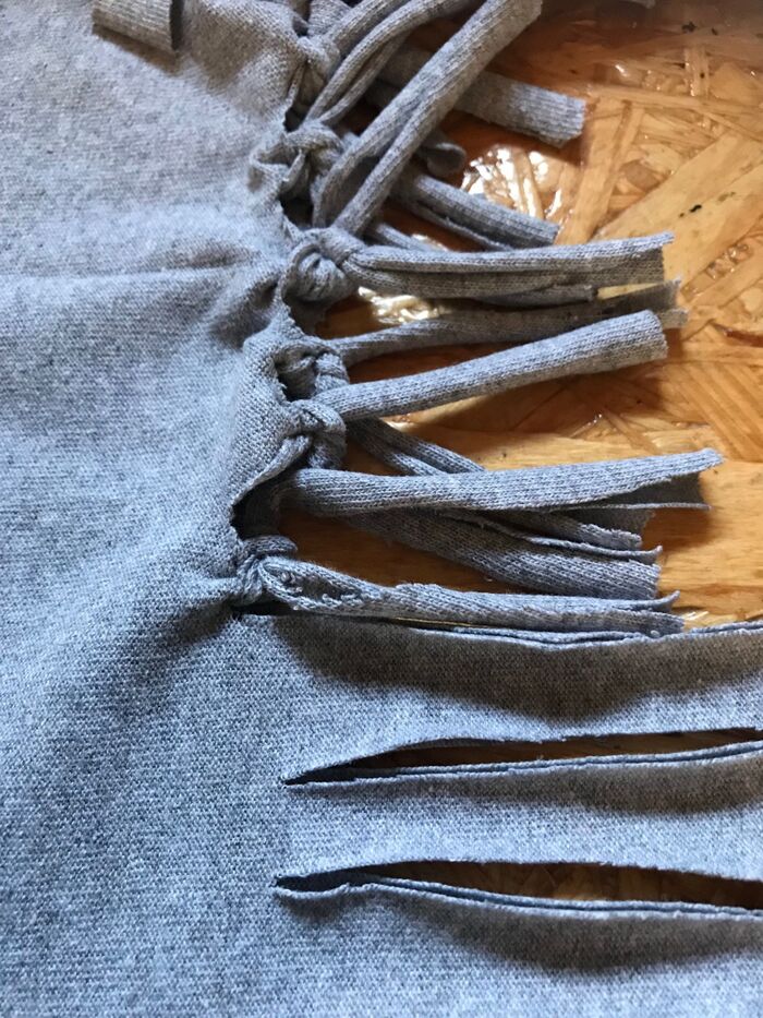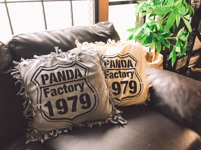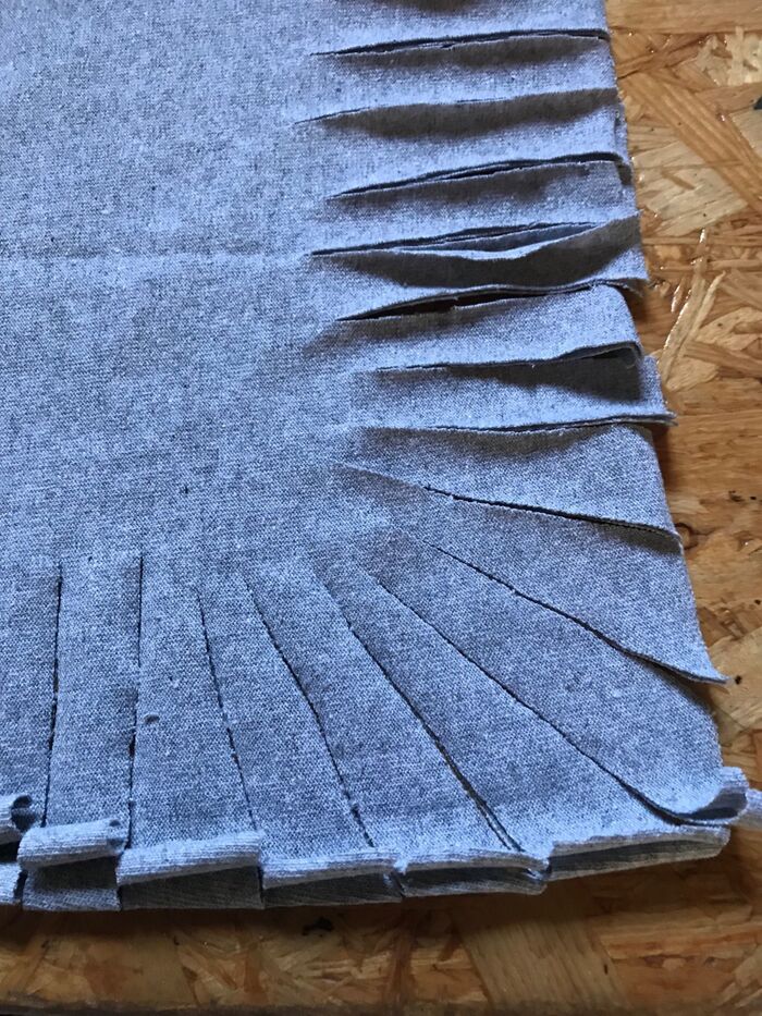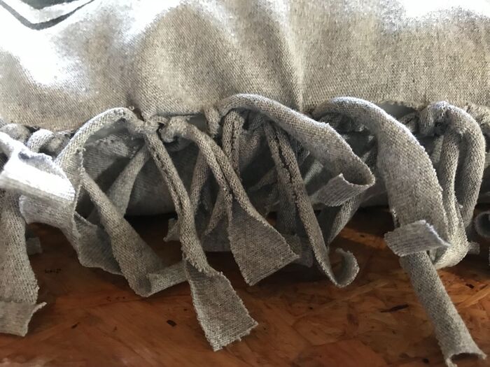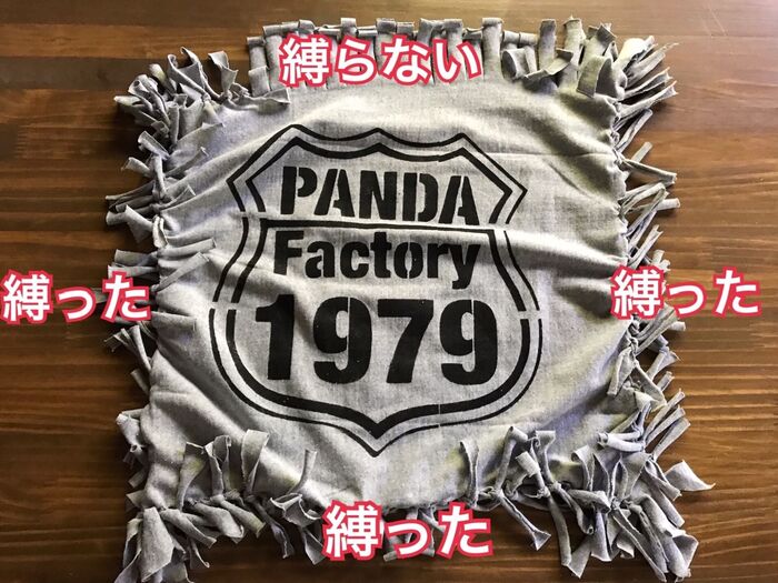 切って縛るだけでオリジナルクッションカバーが出来ました。