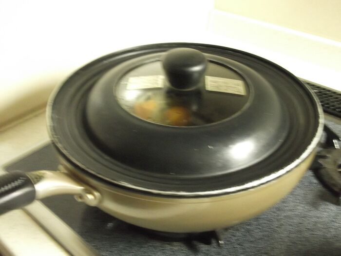 ハーブソルトをかけてしんなりするまで蓋をして蒸し炒め。