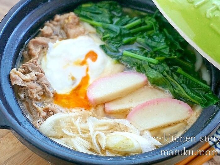 まずは母の思い出の、うどんすきを家族に作りました♪