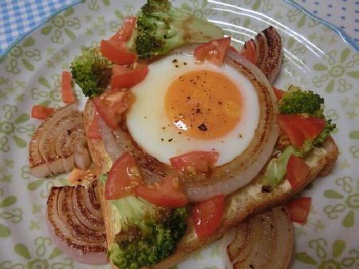 目玉焼きにしっかり火を通したい場合は、玉ねぎを焼き始めるときにたまごを入れると良いです。
