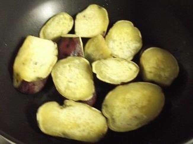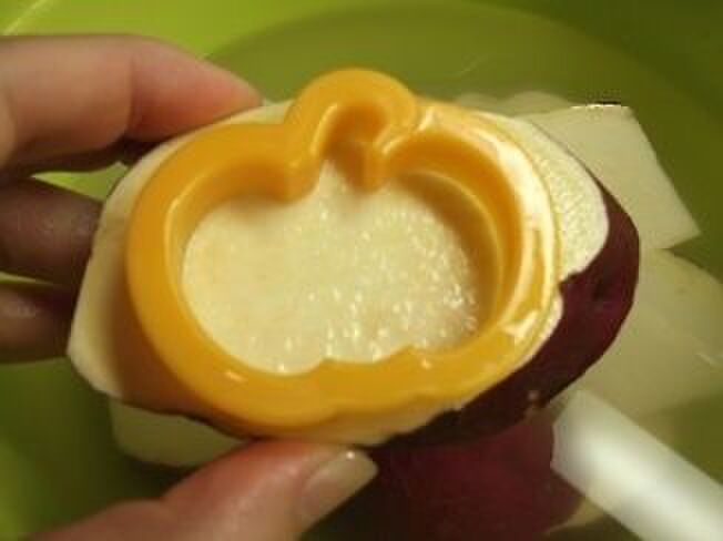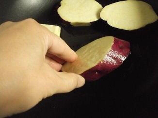 薩摩芋は2cmくらいの輪切りにしてさっと水にさらし
