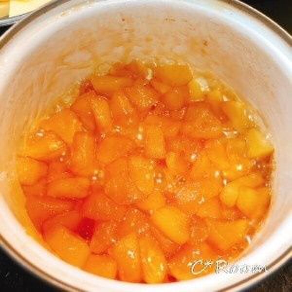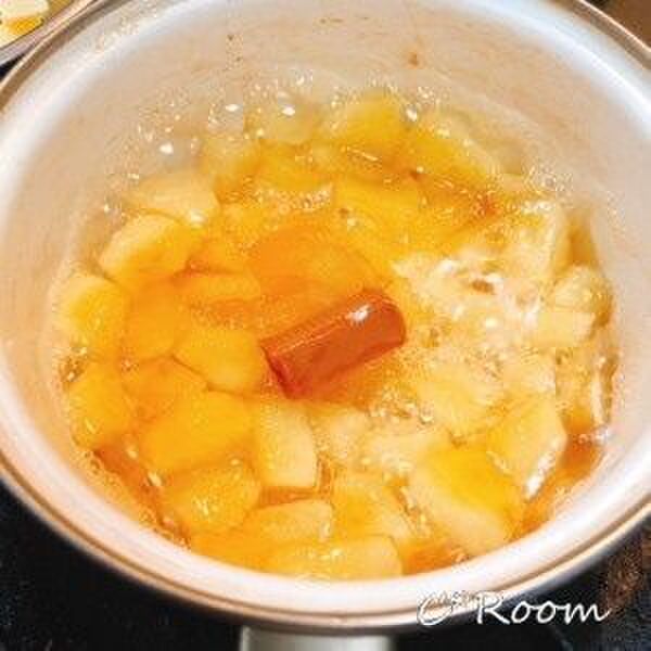 りんごが透き通ってきたら、蓋を取って少し水分を飛ばす。
