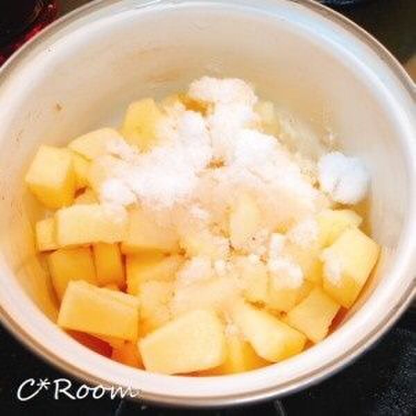 りんごは皮をむき、芯を取り除いて、1~2㎝角に切っておく。