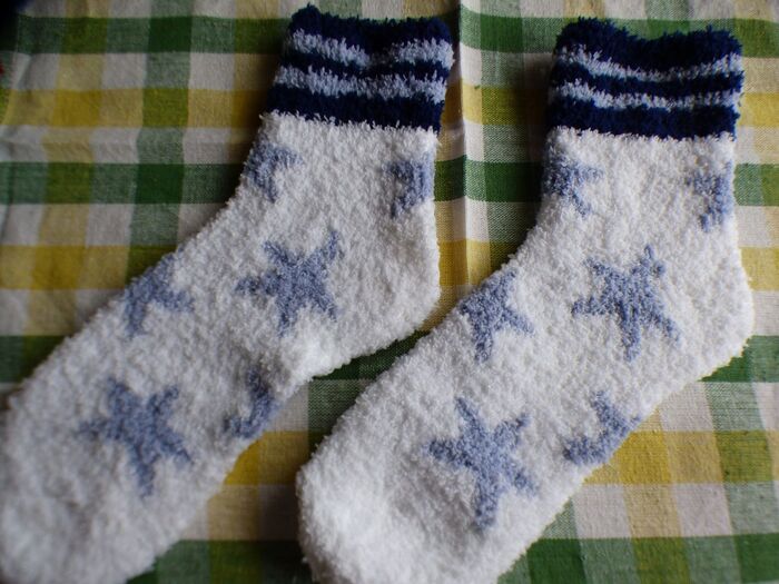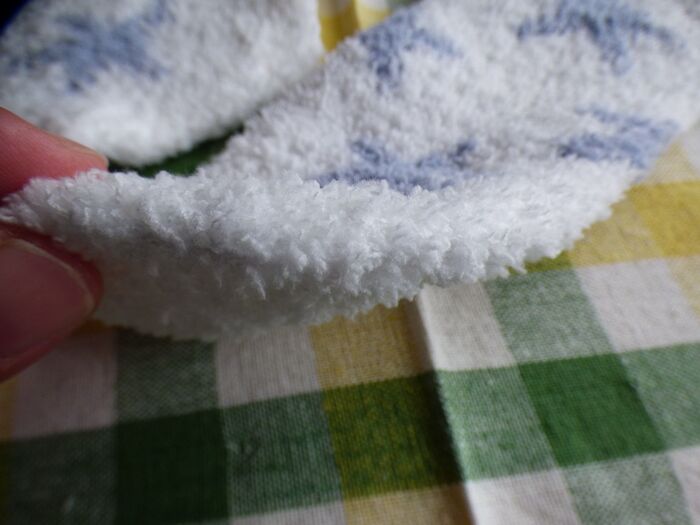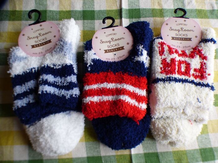 すごく肉厚だし、もこもこ暖かそうきっと200円か300円商品だろうな・・と思いながら手に取ると、値札何にもついていない!!