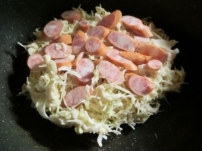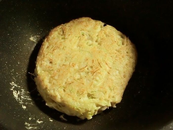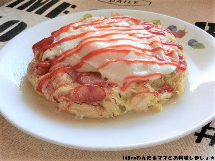 キャベツがたっぷり入っていてボリュームがあるので、中までしっかり火が通るように弱めの中火で焼いてください。