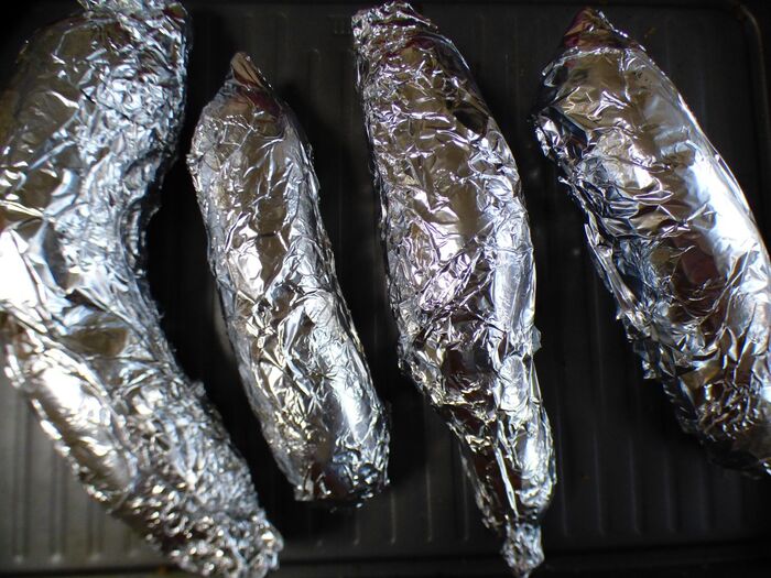 焼いもの中心に穴を掘り、はちみつ・パンケーキシロップを入れるもの!!