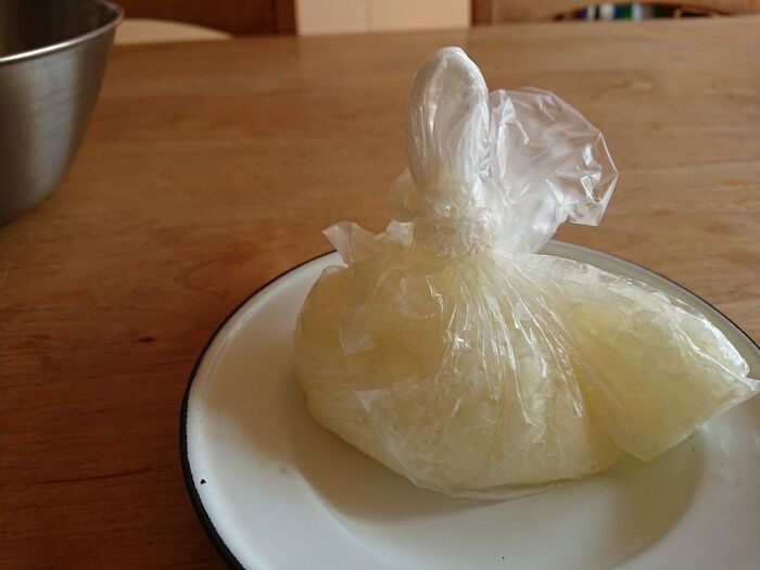 空気を抜いてきゅっと口を縛り、冷蔵庫に入れておきます。