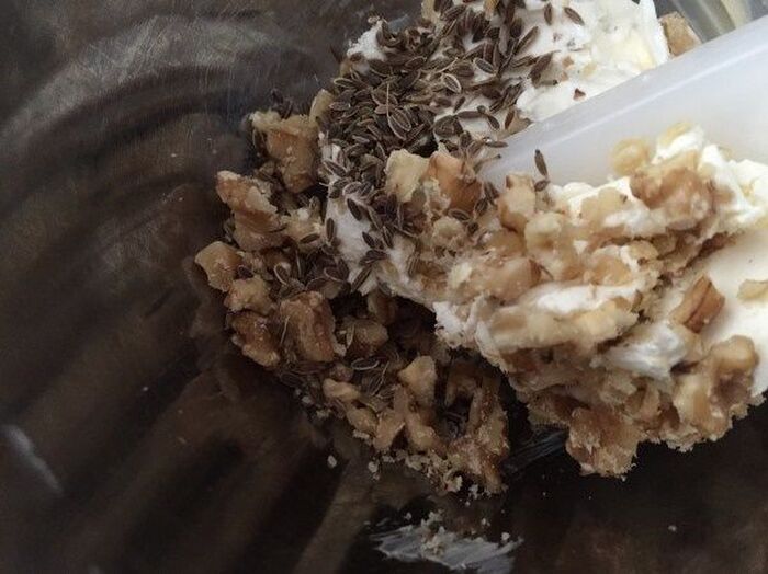 ボウルにクリームチーズ ディル 砕いたクルミ マヨネーズを加えよく混ぜる