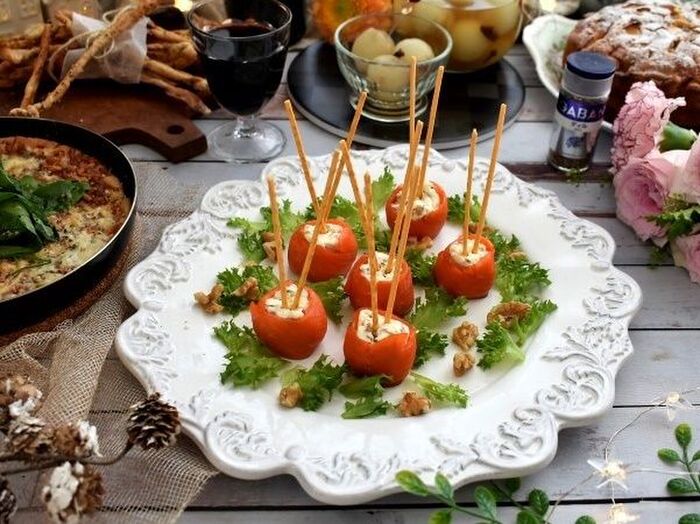 プリッツをさしてクルミ(分量外)をちらす
