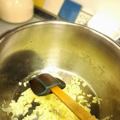 たまねぎをみじん切りにし、バターでさっと炒める。