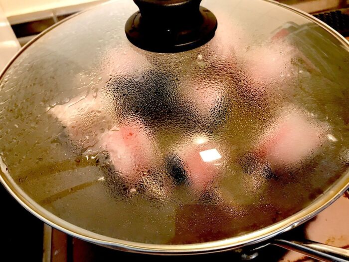 肉に火が通るまで蓋をしながら焼くことで、外かりっ!中じゅんわり!そして、時短で全体に火がとおります。