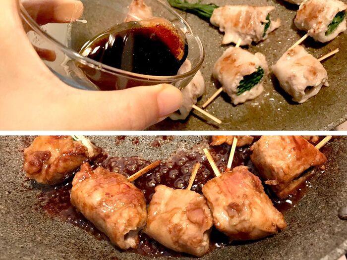 3:全体に焼き色がついたらAを回しかけ、ころころと転がしながら絡める。