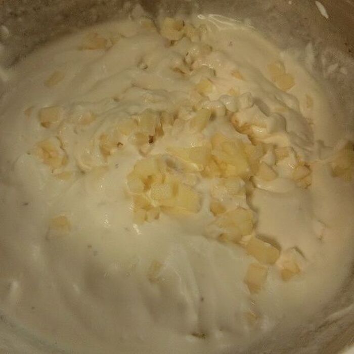 牛乳とりんごを混ぜ合わせます。