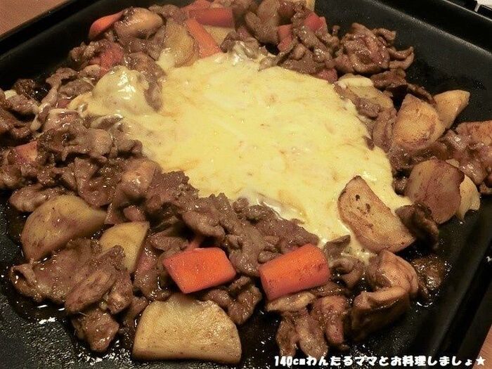 ホットプレートに野菜と1をタレごと入れて炒めます。