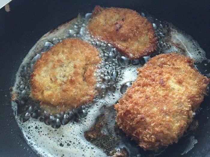 フライパンに揚げ油を入れ揚げ焼きにする