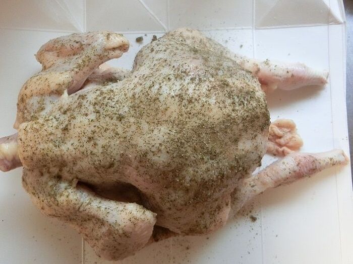 鶏肉の表面とお腹の中を水でよく洗い、しっかり水気を拭き取ります。★印の調味料を表面とお腹の中によくすり込み、1日置きます