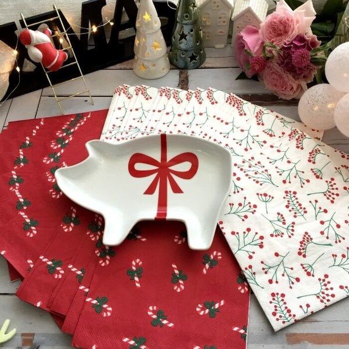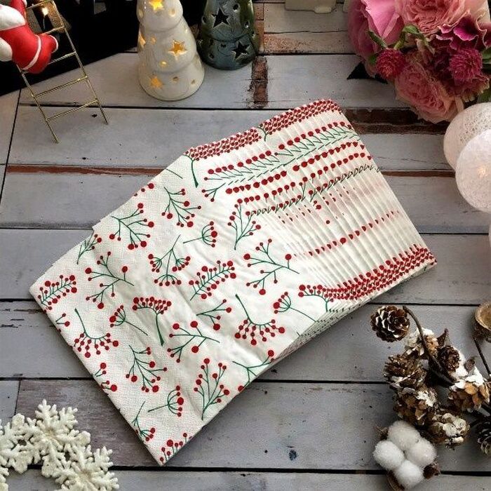 不揃いな赤い実が かわいいホワイトのペーパーナプキン。