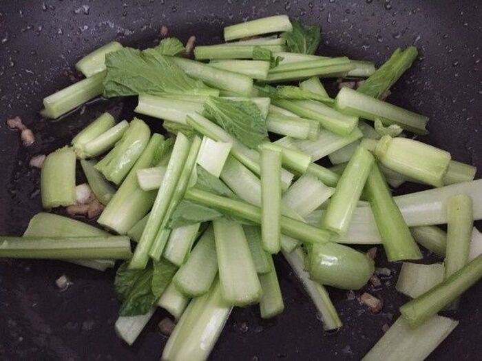 小松菜は 茎 茎と葉っぱ 葉っぱと時間差で炒めると しゃきっと感も残り