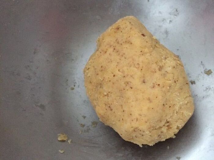 ボウルにふるいにかけた薄力粉と塩 三温糖 アーモンド粉を入れ