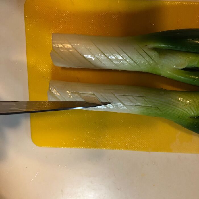 スライスして後からまな板を90度回して何箇所か切ると簡単にみじん切りができます。
