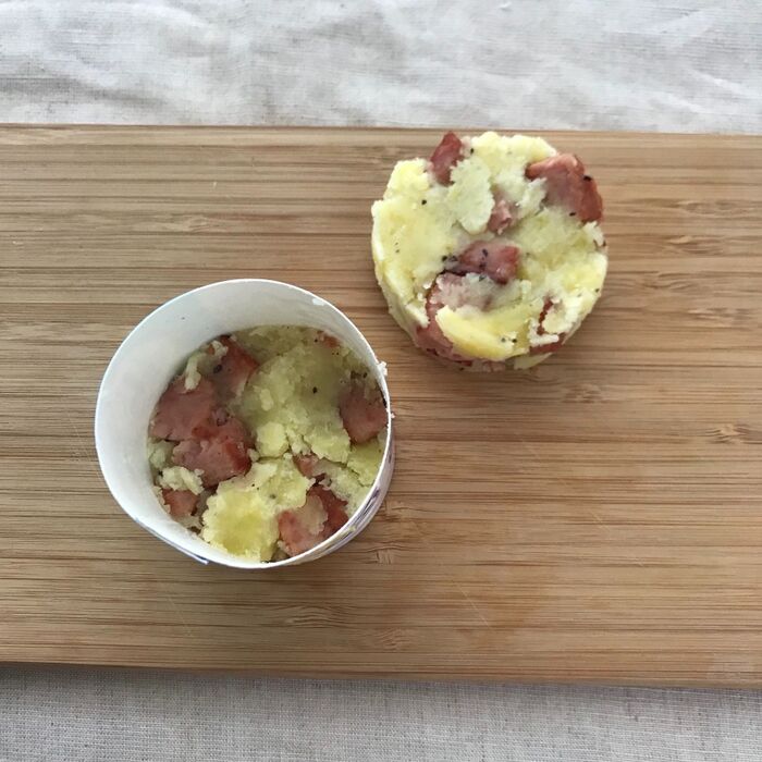じゃがいものパテを挟んで出来上がり。