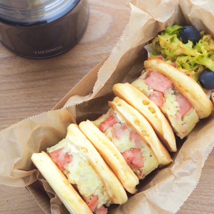 ホットケーキは塩気のあるおかずとの相性が抜群です。みなさんも好みの具を探してみて下さいねー。