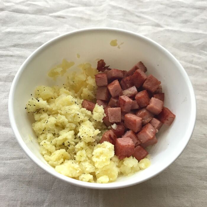 マヨネーズ、塩胡椒で味を整えます。