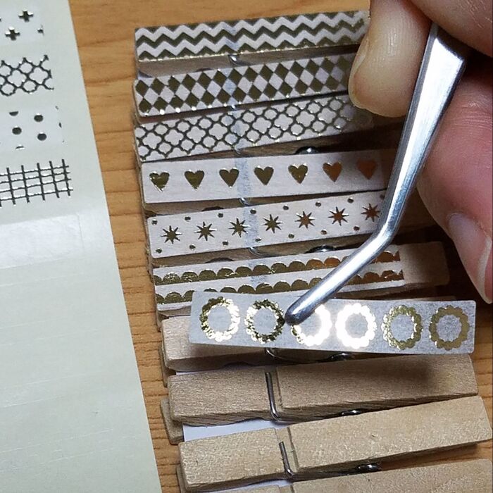 これが、そのマスキングスティックシール。幅が木製ナチュラルピンチMサイズにシンデレラフィットなのです(∩´∀`∩)