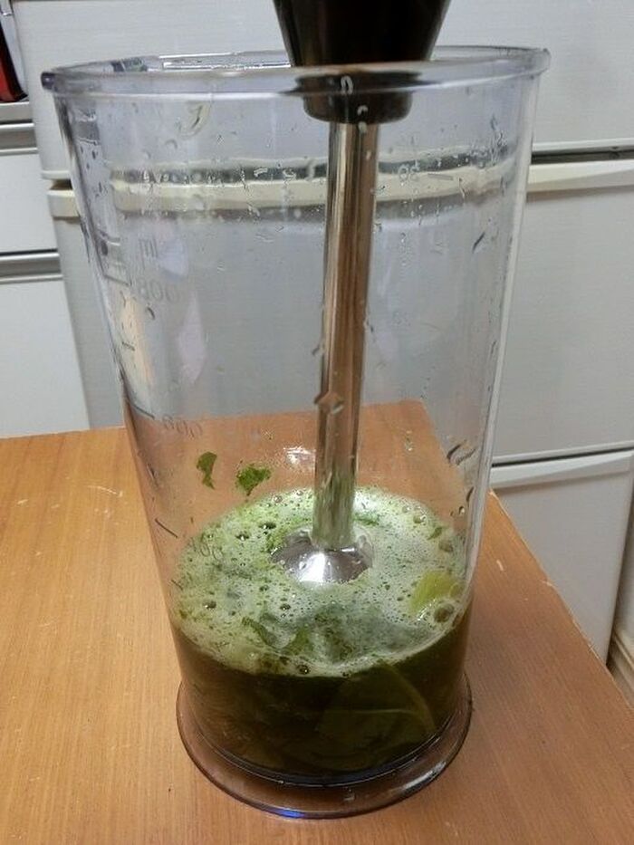 ほうれん草は5㎝くらいに切り、水と一緒にブレンダーで細かくします。