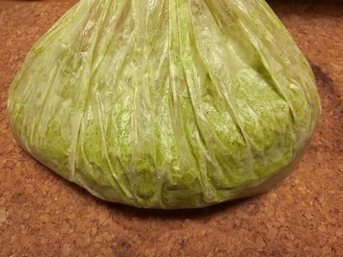 パン生地が2倍くらいに膨らんだらガス抜きをします。