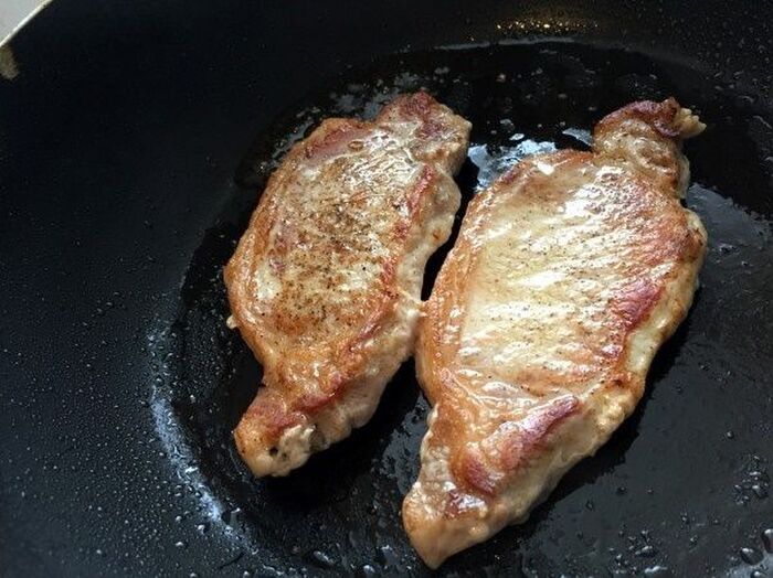 フライパンで両面をこんがりと焼き 塩・コショウしていったん取り出す