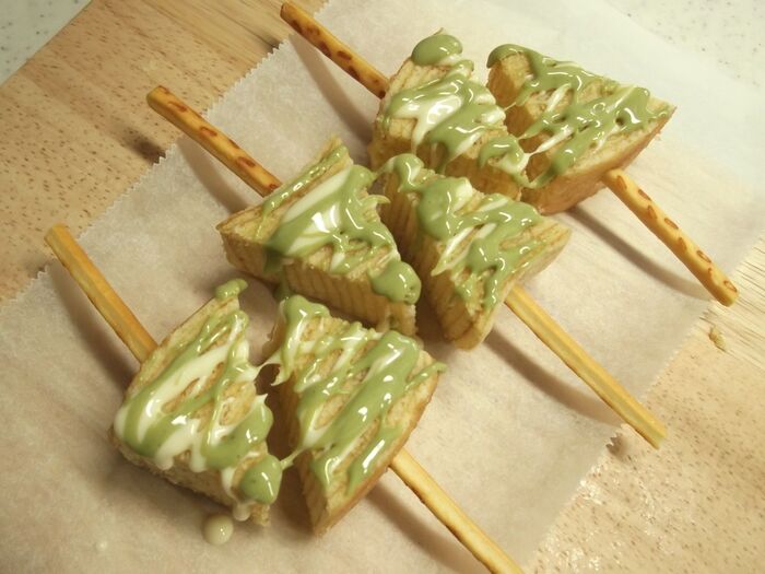 竹串を優しくゆっくりねじりながら刺して引き抜く。
