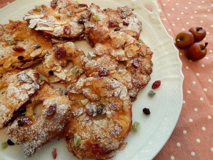 りんごにころもを付け スライスアーモンドを重ならないように全体にまぶす。