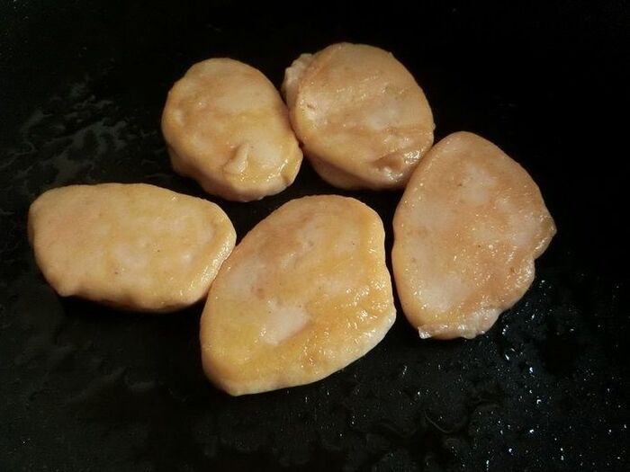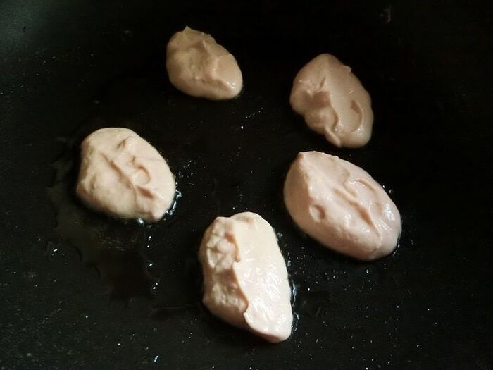フライパンに油を敷き、スプーンですくい落として焼きます。