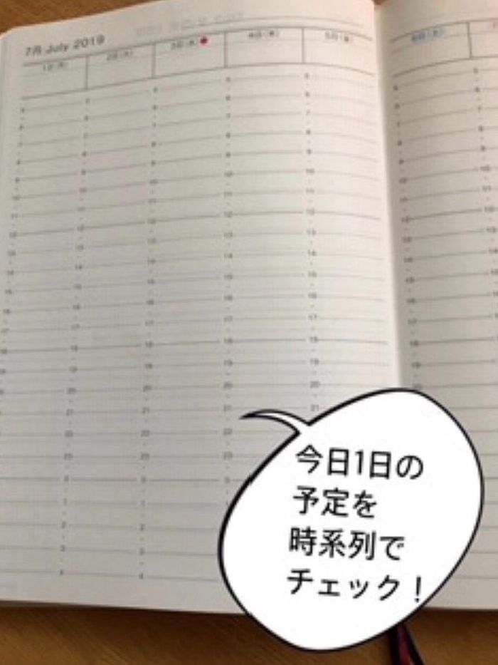 1日のスケジュールもこのページで前の日、朝にも確認!1日に重なる予定もしっかり書くことで管理です!
