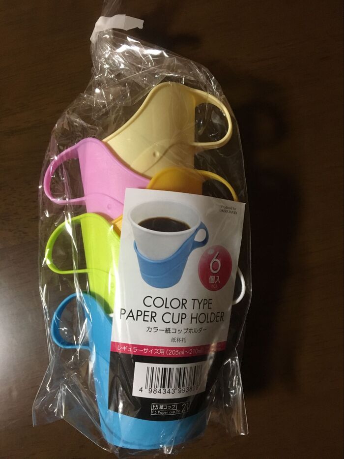 DAISOで6個入りのプラスチック製の紙コップホルダーです。