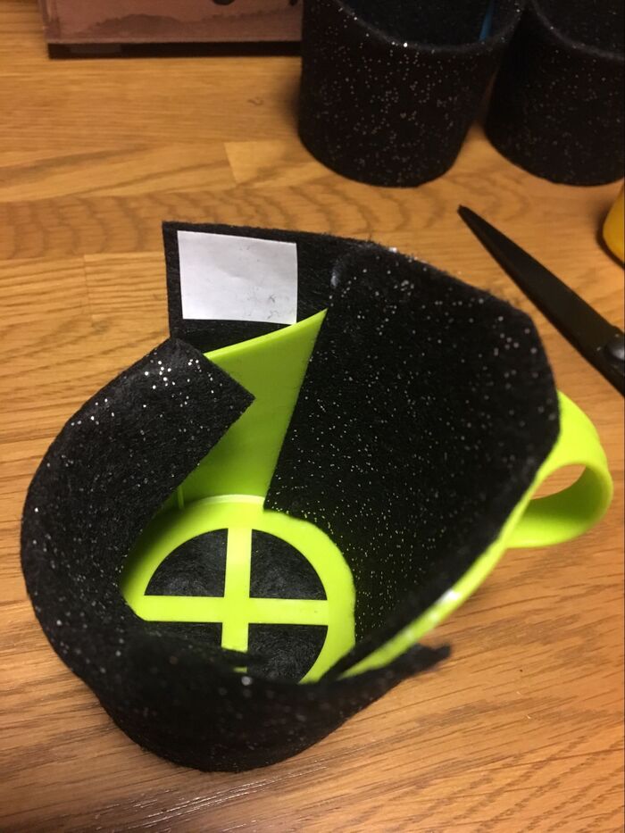 カーブする辺りで切り込みを入れ、フェルト側に両面テープをつけ、内側に折り込み、内側に貼ったフェルトを流れに沿ってカーブをつけて切ったら完成です。
