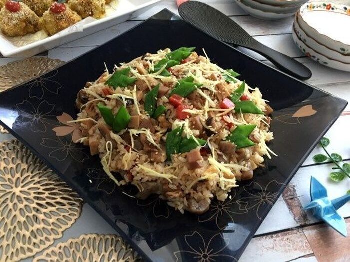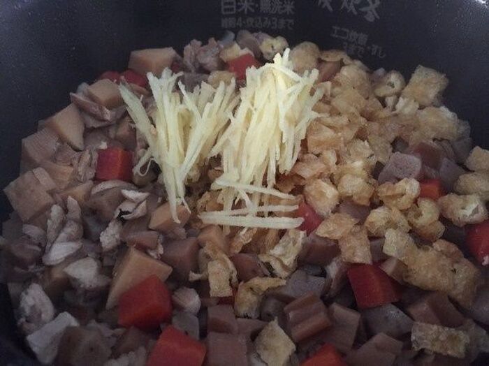 千切りにしたしょうがを 炊き立てのご飯に加え混ぜ合わせる