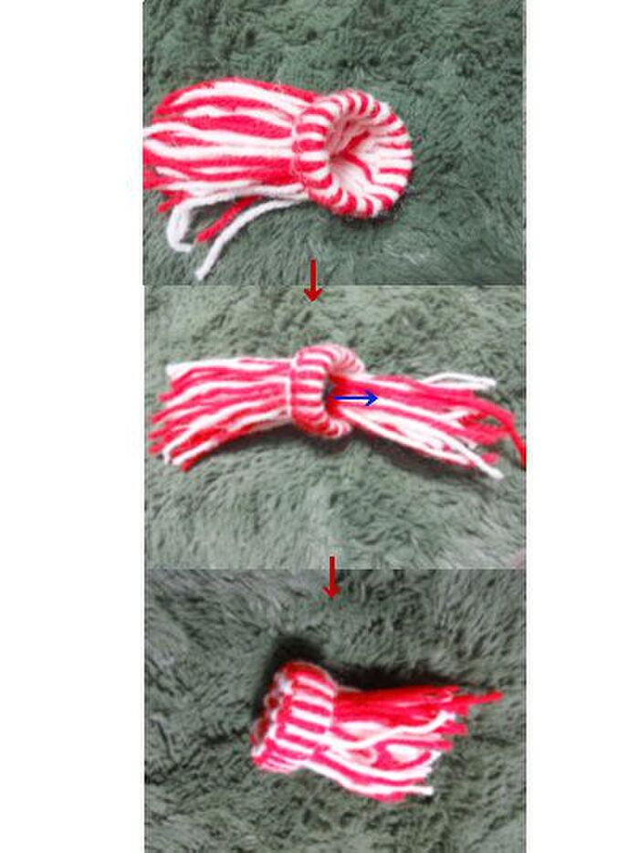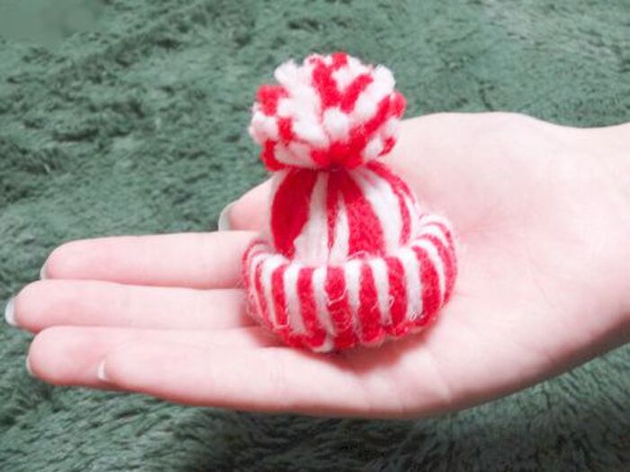 残った糸先が、ニット帽のポンポン部分になります。カットして整えてください。
