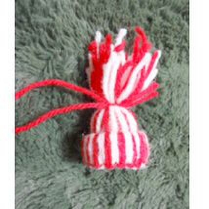 写真は、ぷくぷく毛糸で作ったミニミニニット帽です。