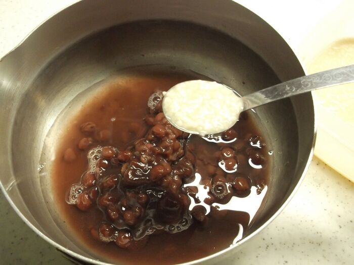 あずきを鍋に入れて