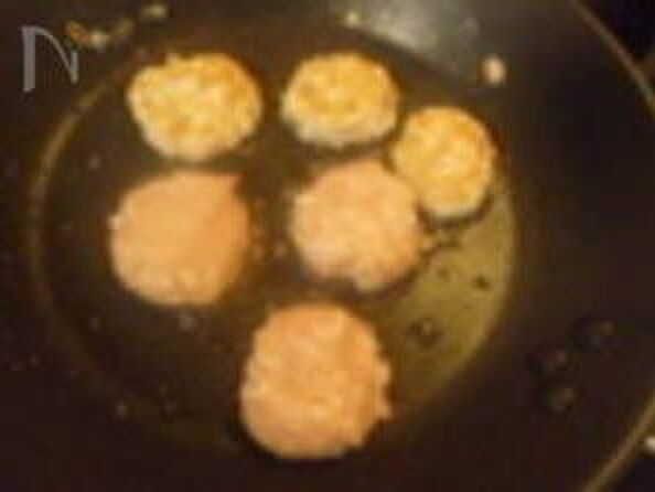 【1】☆印のつくねを作る。鶏の軟骨は細かく切る。調味料とひき肉を混ぜて粘りを出し丸め少し潰してフライパンできつね色になるまで焼く。