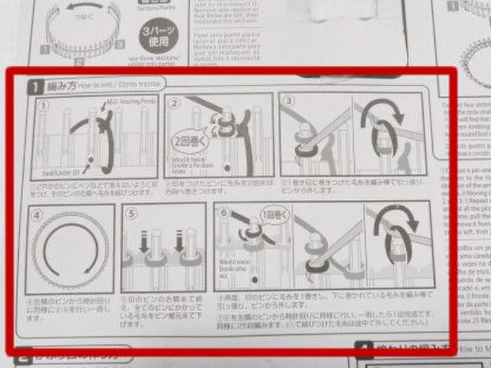 ベビーサイズのニット帽を作るのなら3パーツ使用、キッズ~大人サイズのニット帽を作るのなら4パーツ使用となっています。