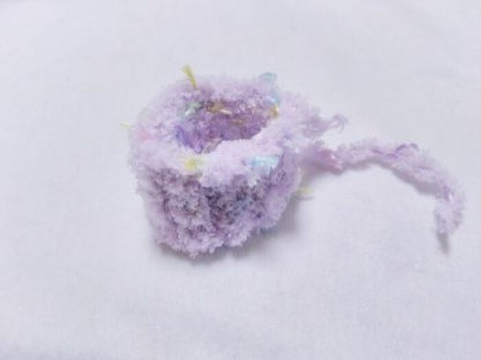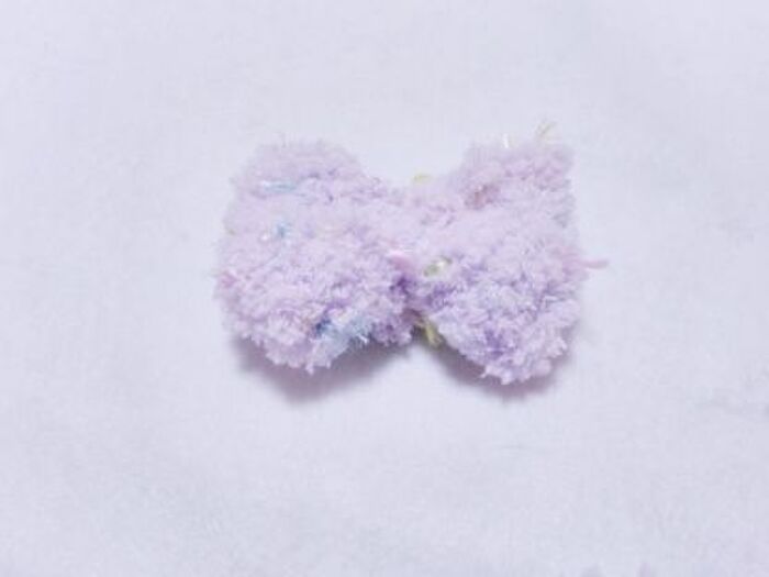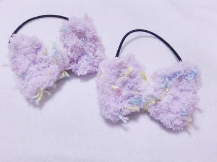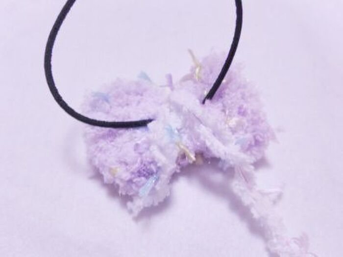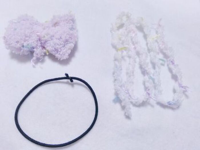 毛糸のリボンパーツとヘアゴムを用意した毛糸で縛ります。
